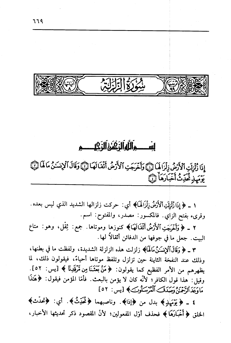 سورة الزلزلة مختلف فيها وهي ثمان آيات