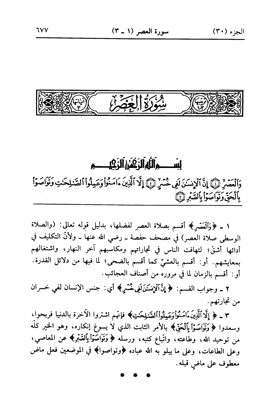 سورة العصر مختلف فيها وهي ثلاث آيات