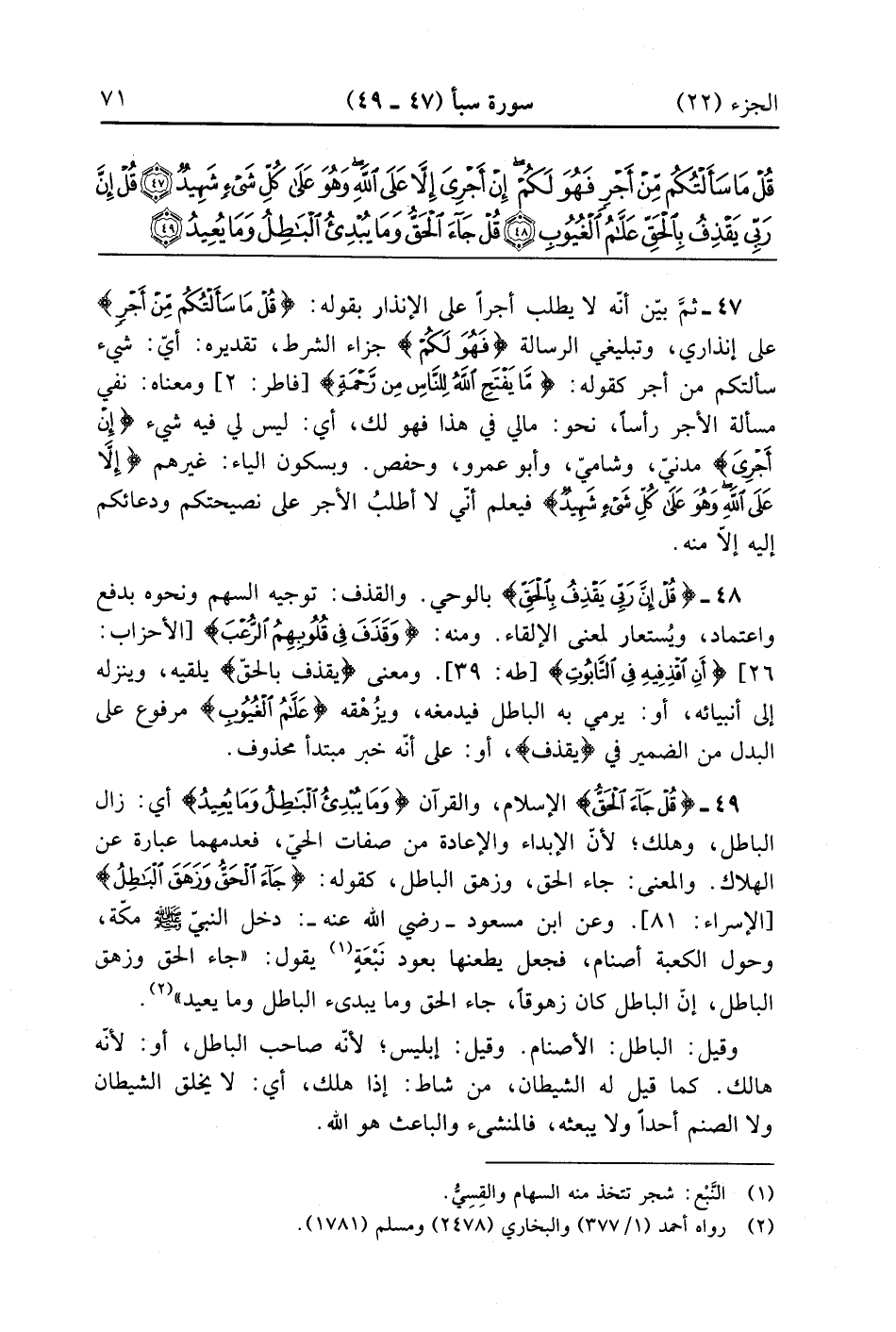 قُلْ إِنَّ رَبِّي يَقْذِفُ بِالْحَقِّ عَلَّامُ الْغُيُوبِ (48)
