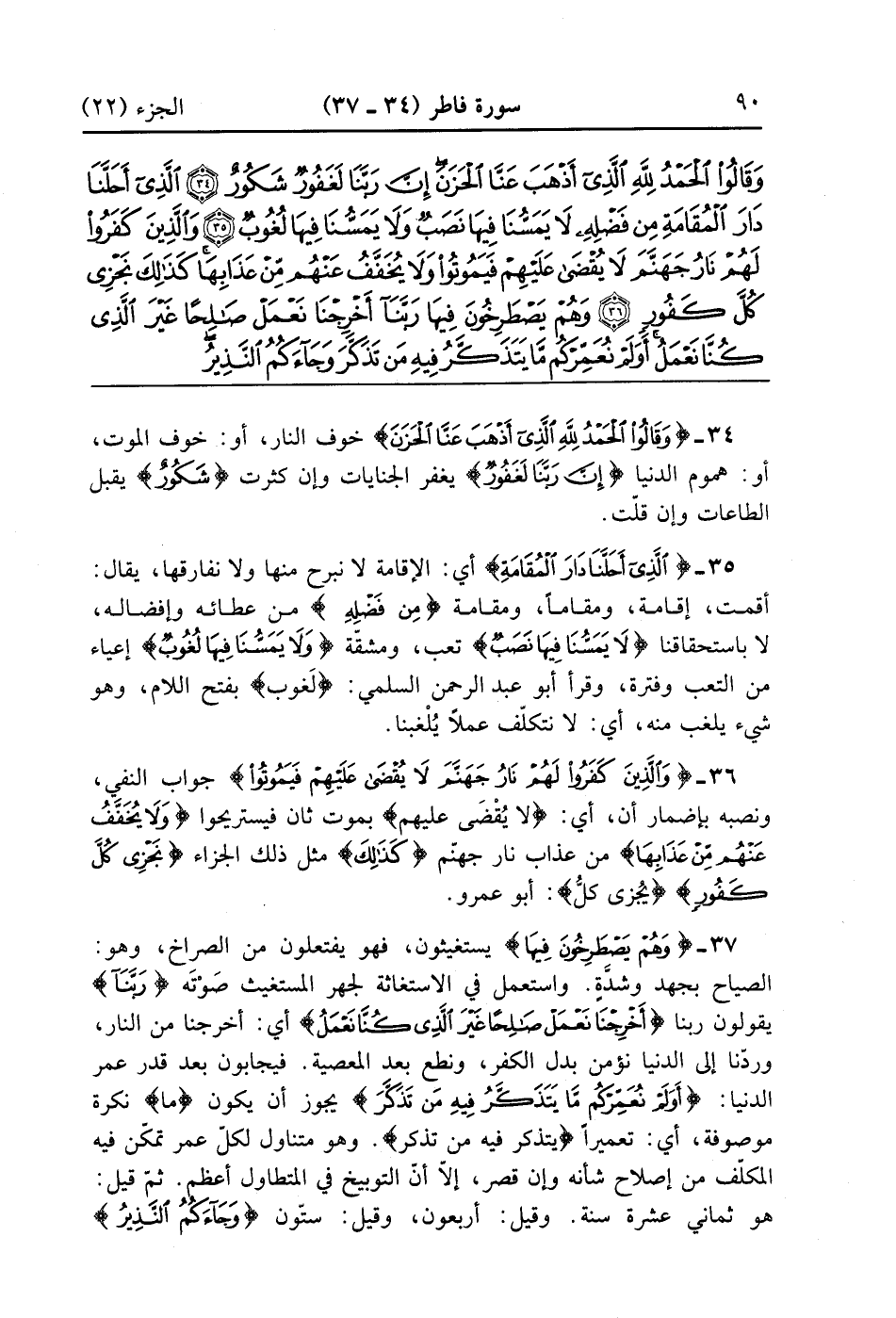 وَقَالُوا الْحَمْدُ لِلَّهِ الَّذِي أَذْهَبَ عَنَّا الْحَزَنَ إِنَّ رَبَّنَا لَغَفُورٌ شَكُورٌ (34)