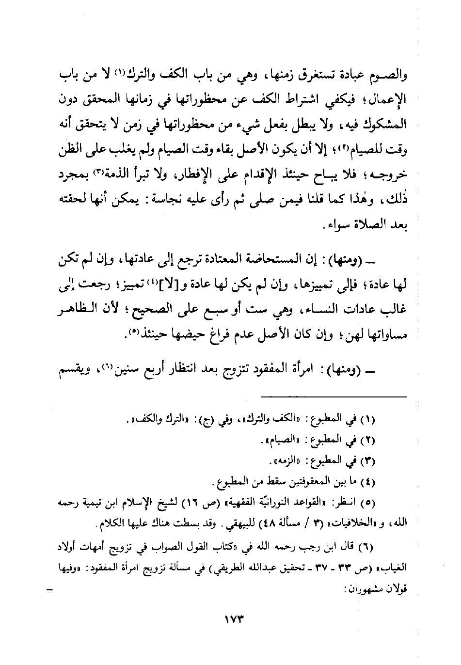 (¬6) قال ابن رجب رحمه اللَّه في "كتاب القول الصواب في تزويج أمهات أولاد الباب" (ص 33 - 37 - تحقيق عبد اللَّه الطريقي) في مسألة تزويج امرأة المفقود: "وفيها قولان مشهوران: =