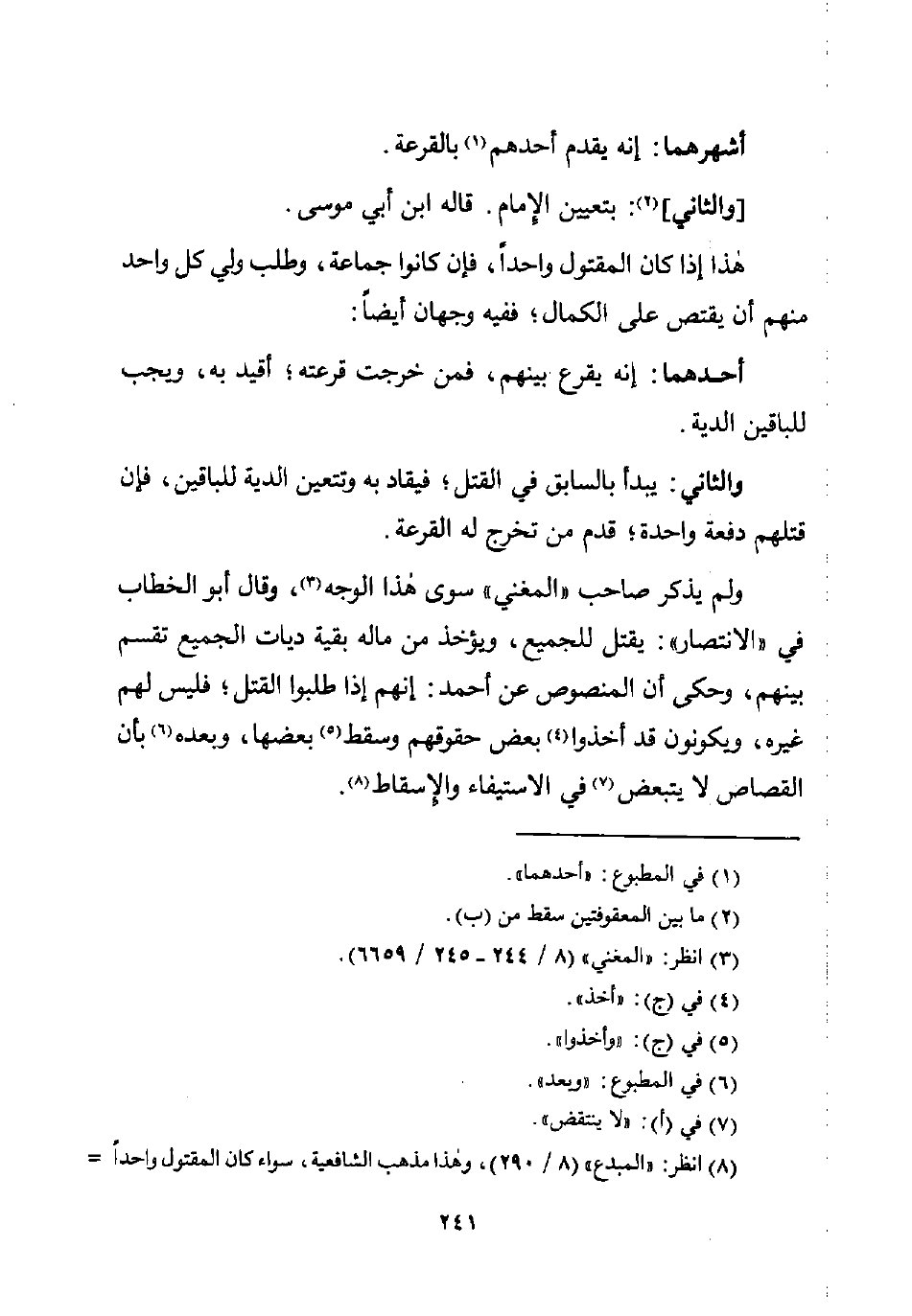 (¬8) انظر: "المبدع" (8/ 290)، وهذا مذهب الشافعية، سواء كان المقتول واحدًا =