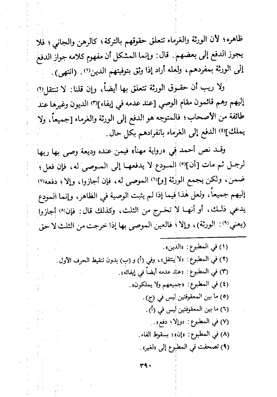 ظاهره، لأن الورثة والغرماء تتعلق حقوقهم بالتركة؛ كالرهن والجاني؛ فلا يجوز الدفع إلى بعضهم. قال: وإنما المشكل أن مفهوم كلامه جواز الدفع إلى الورثة بمفردهم، ولعله أراد إذا وثق بتوفيتهم الدين (¬1). (انتهى).