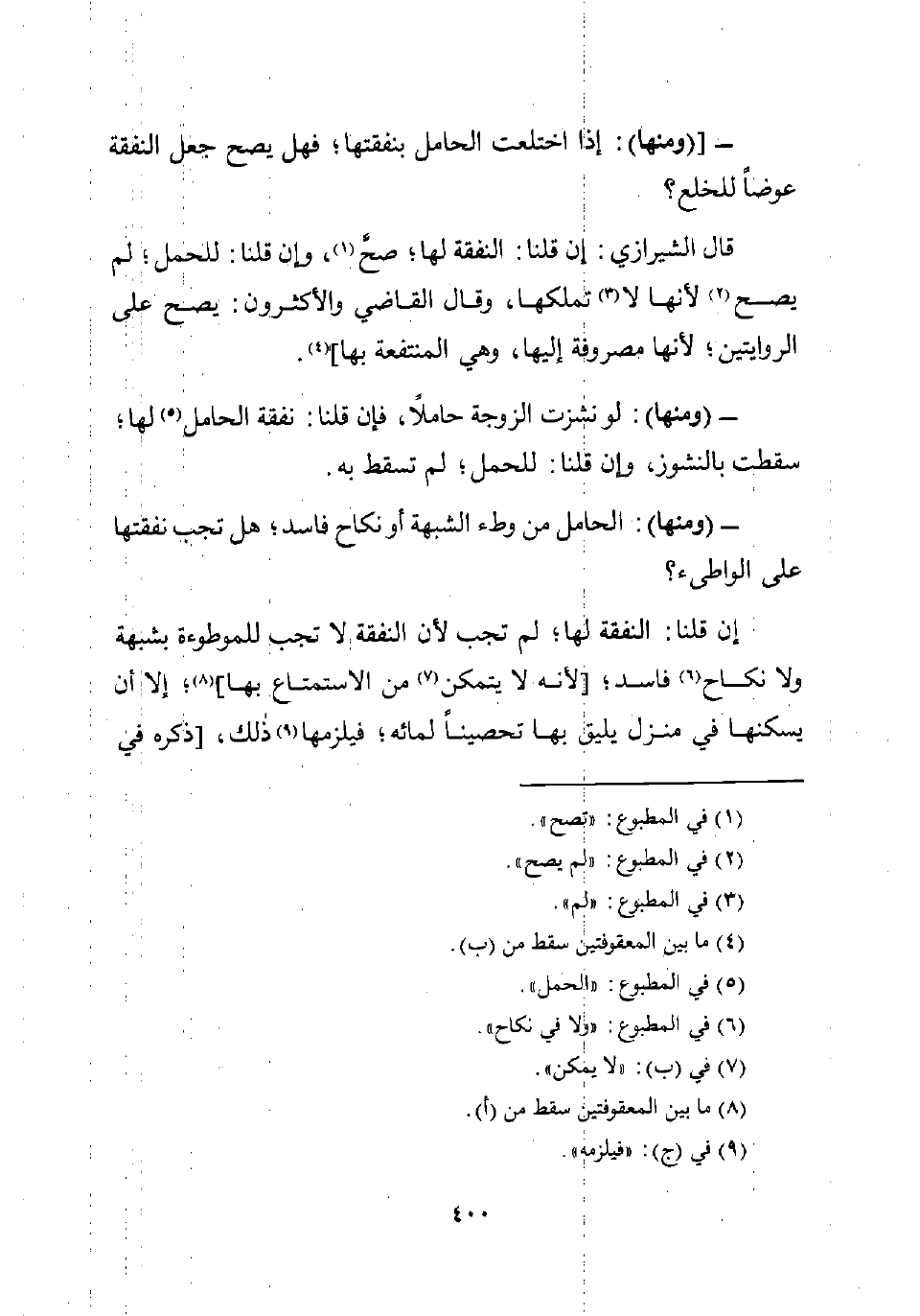 -[(ومنها): إذا اختلعت الحامل بنفقتها؛ فهل يصح جعل النفقة عوضًا للخلع؟