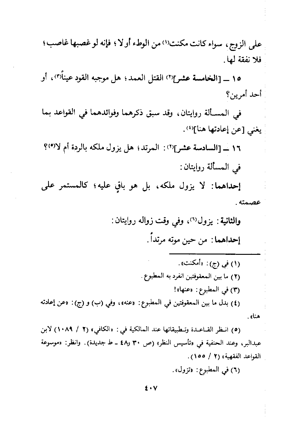 (¬5) انظر القاعدة وتطبيقاتها محمد المالكية في: "الكافي" (2/ 1089) لابن عبد البر، وعند الحنفية في "تأسيس النظر" (ص 30 و 48 - ط جديدة). وانظر: "موسوعة القواعد الفقهية" (2/ 155).