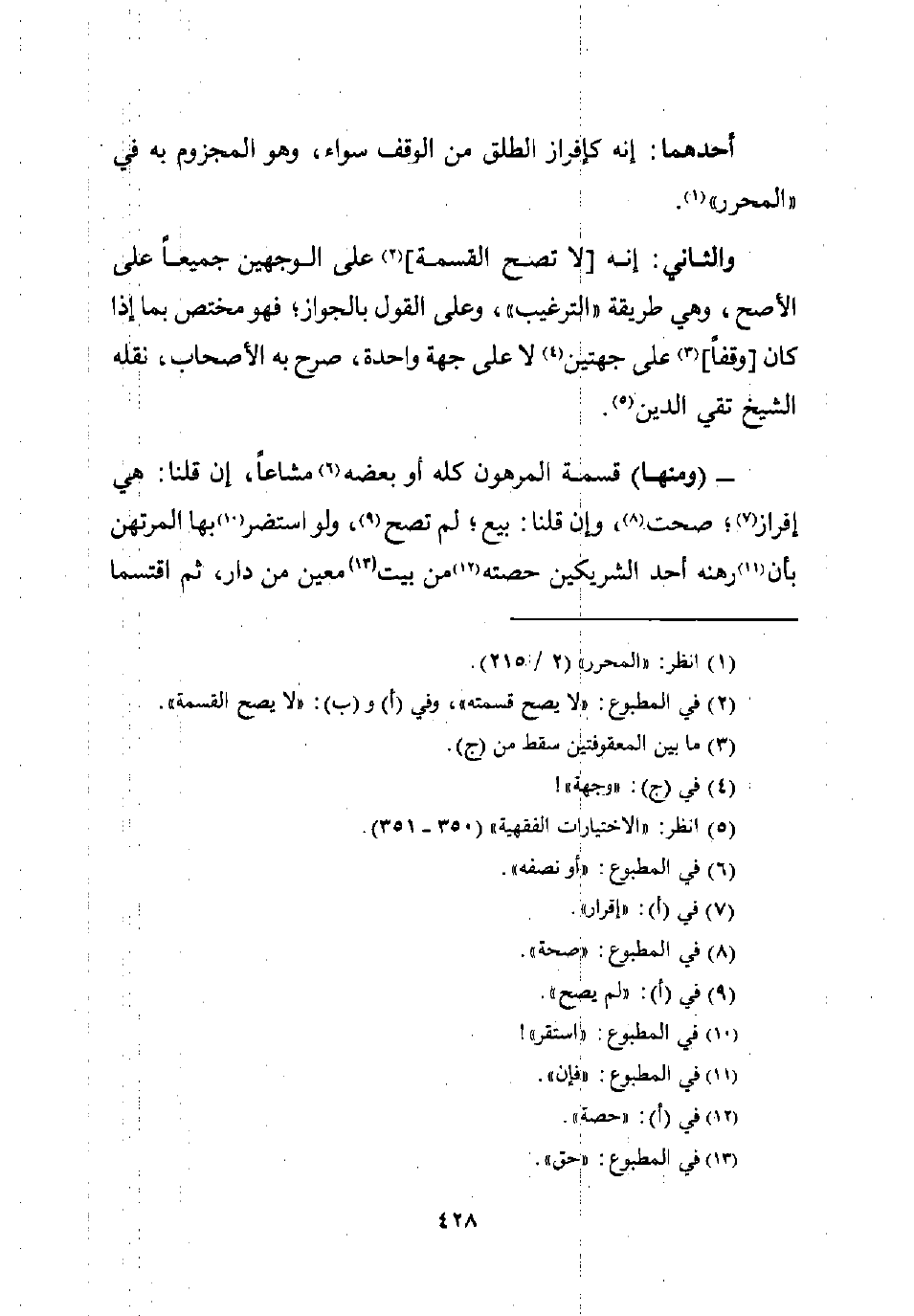 (¬2) في المطبوع: "لا يصح قسمته"، وفي (أ) و (ب): "لا يصح القسمة".
