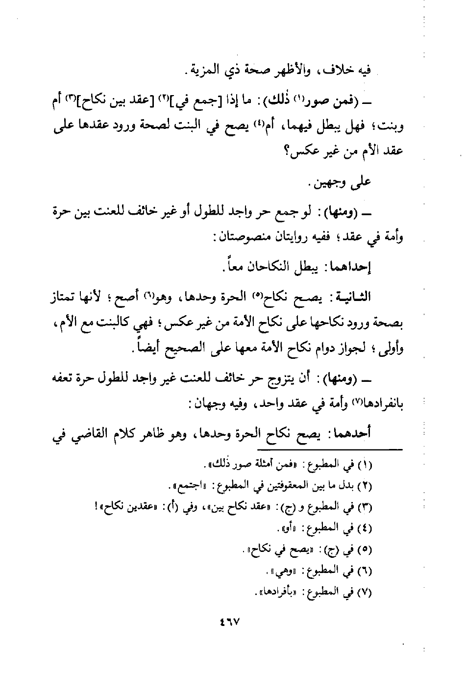 - (منها): لو جمع حر واجد للطول أو غير خائف للعنت بين حرة وأمة في عقد؛ ففيه روايتان منصوصتان: