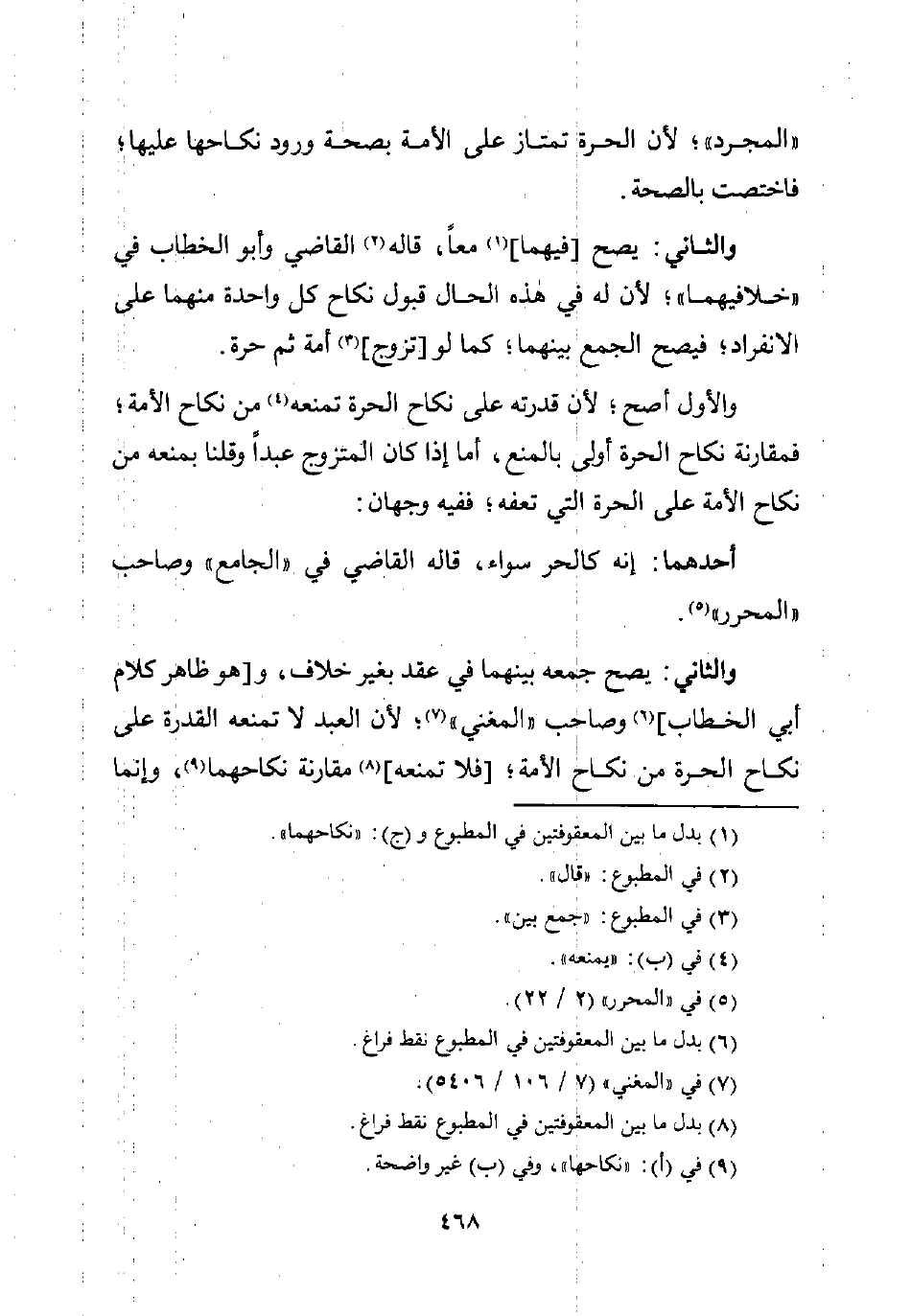 والثاني: يصح جمعه بينهما في عقد بغير خلاف، و [هو ظاهر كلام أبي الخطاب] (¬6) وصاحب "المغني" (¬7)؛ لأن العبد لا تمنعه القدرة على نكاح الحرة من نكاح الأمة؛ [فلا تمنعه] (¬8) مقارنة نكاحهما (¬9)، وإنما
