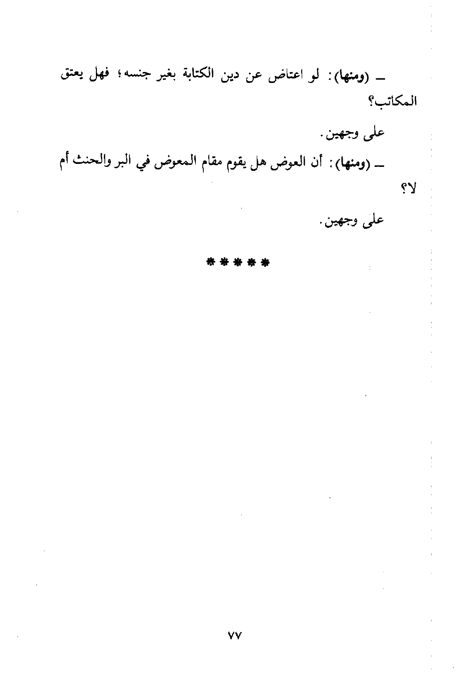 - (ومنها): لو اعتاض عن دين الكتابة بغير جنسه؛ فهل يعتق المكاتب؟