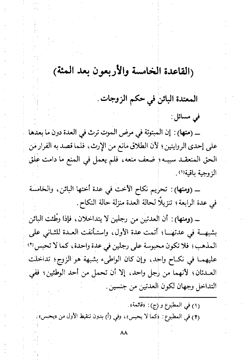 (ومنها): تحريم نكاح الأخت في عدة أختها البائن، والخامسة في عدة الرابعة؛ تنزيلًا لحالة العدة منزلة حالة النكاح.