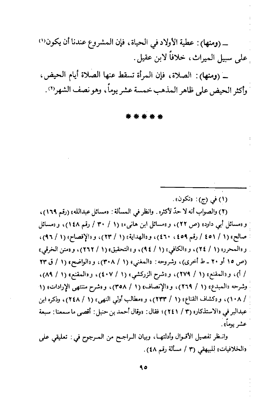 (¬2) والصواب أنه لا حدّ لأكثره. وانظر في المسألة: "مسائل عبد اللَّه" (رقم 169)، و"مسائل أبي داود" (ص 22)، و"مسائل ابن هانئ" (1/ 30/ رقم 148)، و"مسائل صالح" (1/ 451/ رقم 459، 460)، و"الهداية" (1/ 23)، و"الإفصاح" (1/ 96)، و"المحرر" (1/ 24)، و"الكافي" (1/ 94)، و"التحقيق" (1/ 262)، و"سنن الخرقي" (ص 15 أو 20 - ط أخرى)، وشروحه: "المغني" (1/ 308)، و"الواضح" (1/ ق 23/ أ)، و"المقنع" (1/ 279)، و"شرح الزركشي" (1/ 407)، و"المقنع" (1/ 89)، وشرحه "المبدع" (1/ 269)، و"الإنصاف" (1/ 358)، و"شرح منتهى الإرادات" (1/ 108)، و"كشاف القناع" (1/ 233)، و"مطالب أولي النهى" (1/ 248)، وذكره ابن عبد البر في "الاستذكار" (3/ 241)؛ فقال: "وقال أحمد بن حبل: أقصى ما سمعنا: سبعة عشر يومًا".