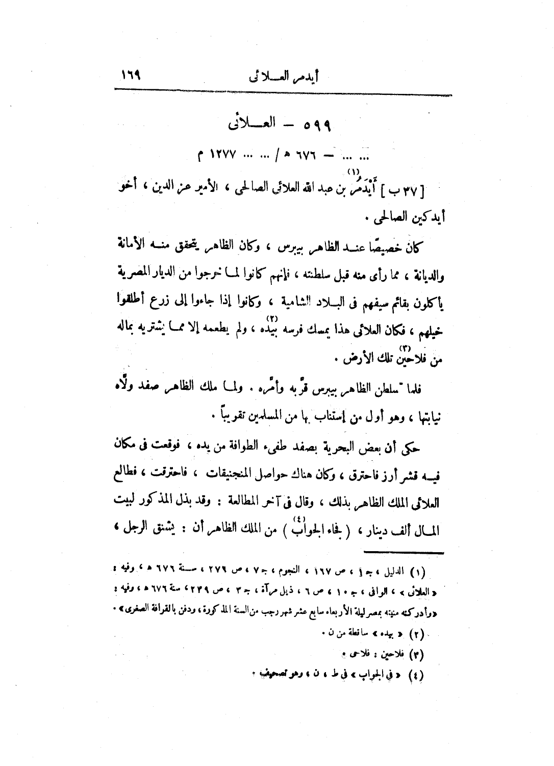 حكى أن بعض البحرية بصفد طفئ الطوافة من يده، فوقعت في مكان فيه قشر أرز فاحترق، وكان هناك حواصل المنجنيقات، فاحترقت، فطالع العلائي الملك الظاهر بذلك، وقال في آخر المطالعة: وقد بذل المذكور لبيت المال ألف دينار، فجاء الجواب من الملك الظاهر أن: يشنق الرجل،