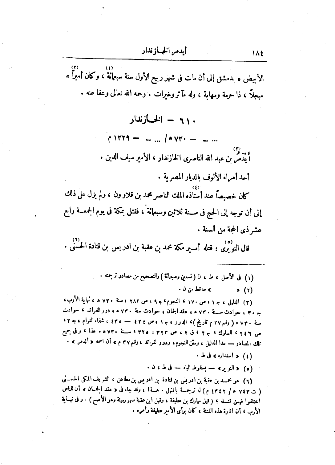 الأبيض بدمشق إلى أن مات في شهر ربيع الأول سنة سبعمائة، وكان أميراً مبجلاً، ذا حرمة ومهابة، وله مآثر وخيرات. رحمه الله تعالى وعفا عنه.