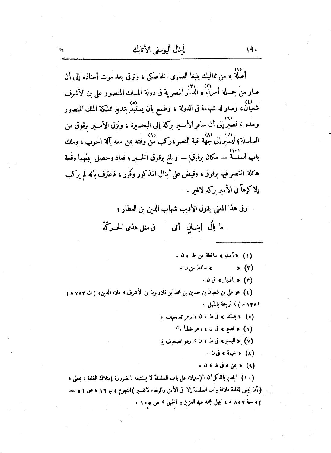 وفي هذا المعنى يقول الأديب شهاب الدين بن العطار: