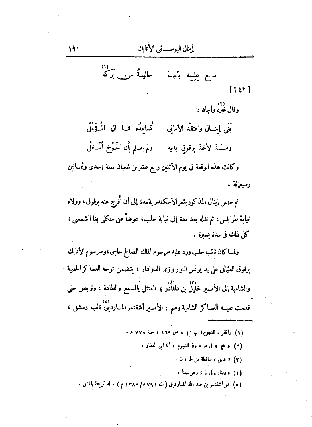 ولما كان نائب حلب ورد عليه مرسوم الملك الصالح حاجي، ومرسوم الأتابك برقوق العثماني على يد يونس النوروزي الدوادار، يتضمن توجه العساكر الحلبية والشامية إلى الأمير خليل بن دلغادر؛ فامتثل بالسمع والطاعة، وتربص حتى قدمت عليه العساكر الشامية وهم: الأمير أشتقمر المارديني نائب دمشق،