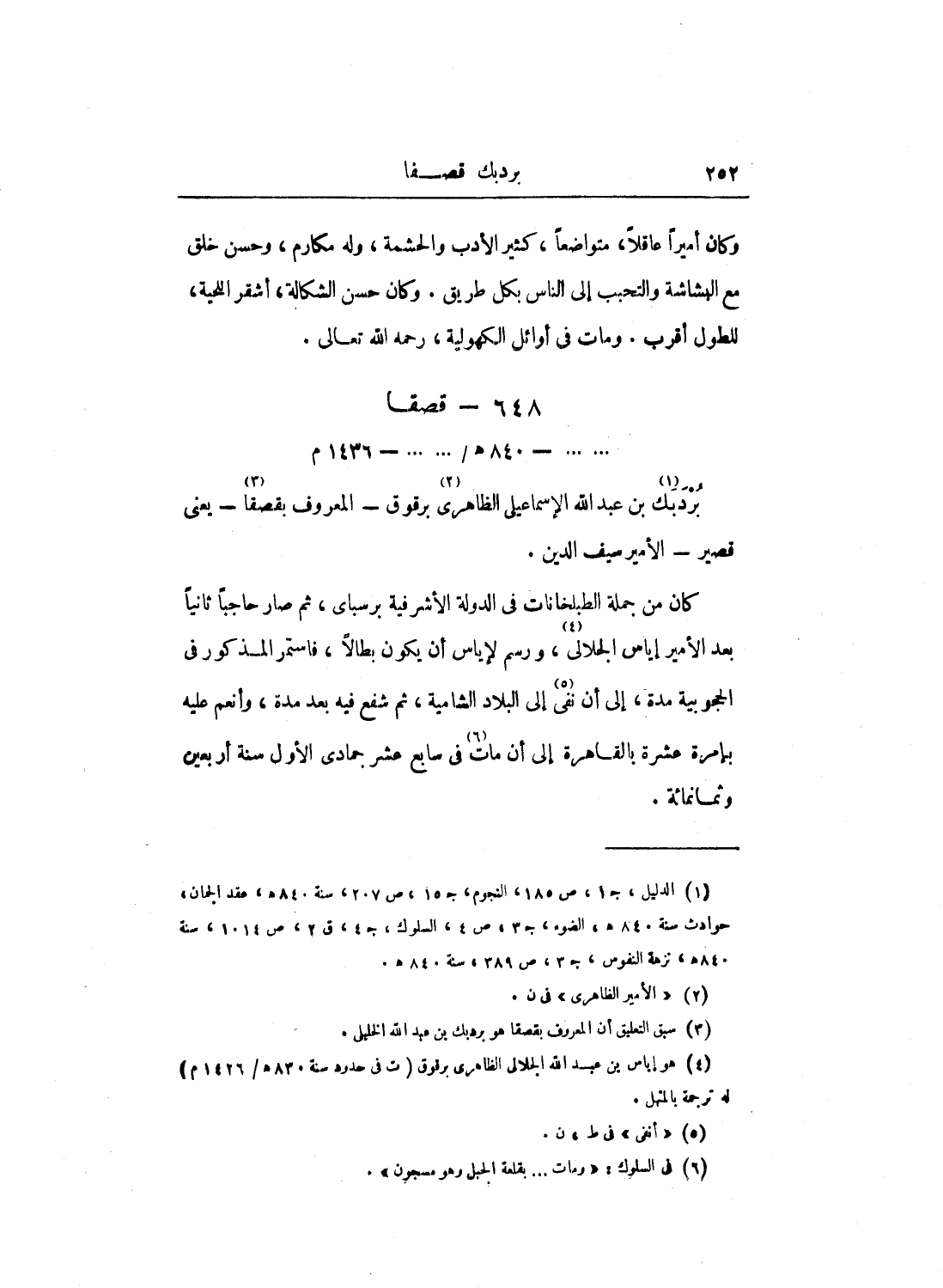 بردبك بن عبد الله الإسماعيل الظاهري برقوق - المعروف بقصقا - يعني قصير - الأمير سيف الدين.