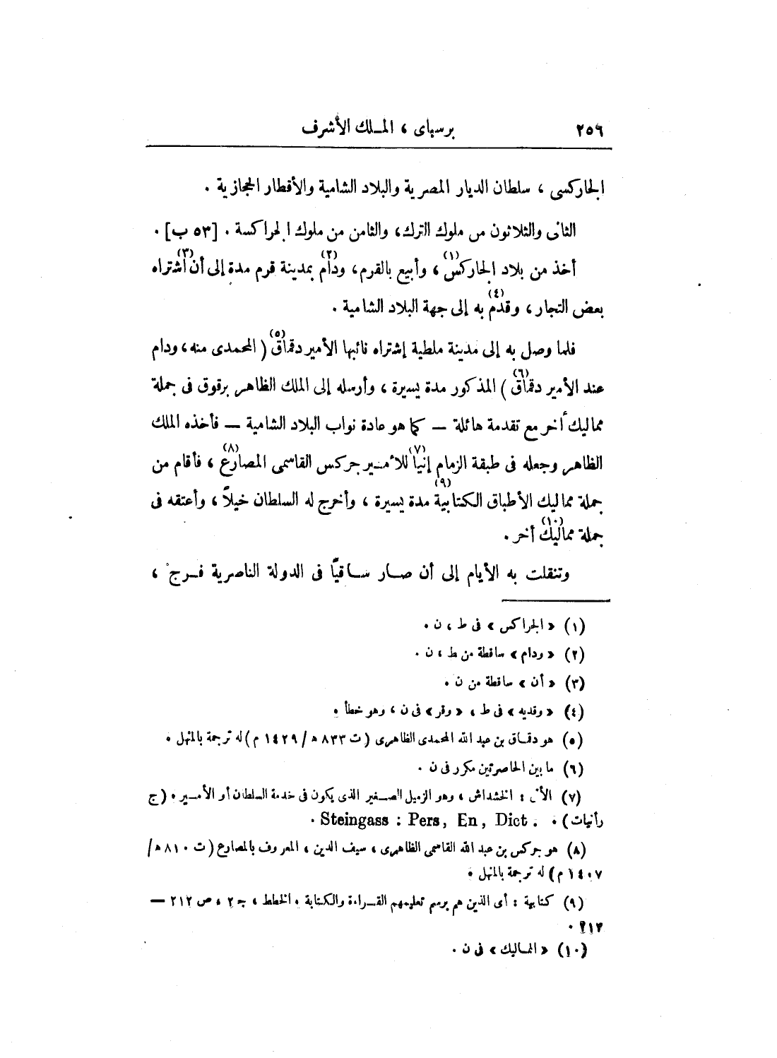 الثاني والثلاثون من ملوك الترك، والثامن من ملوك الجراكسة. أخذ من بلاد الجاركس، وأبيع بالقرم، ودام بمدينة قرم مدة إلى أن اشتراه بعض التجار، وقدم به إلى جهة البلاد الشامية.