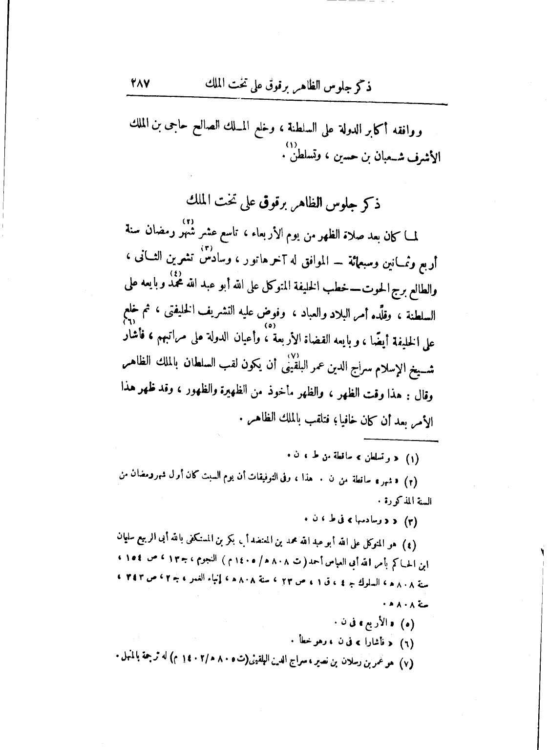 ذكر جلوس الظاهر برقوق على تخت الملك