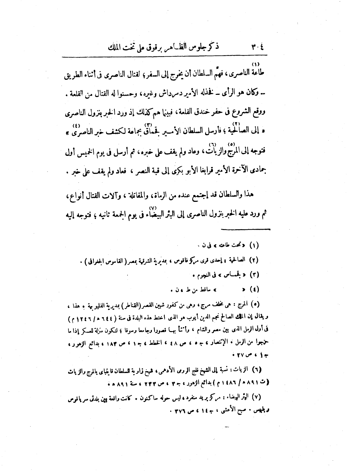 هذا والسلطان قد اجتمع عنده من الرماة، والمقاتلة، وآلات القتال أنواع، ثم ورد عليه الخبر بنزول الناصري إلى البئر البيضاء في يوم الجمعة ثانيه؛ فتوجه إليه