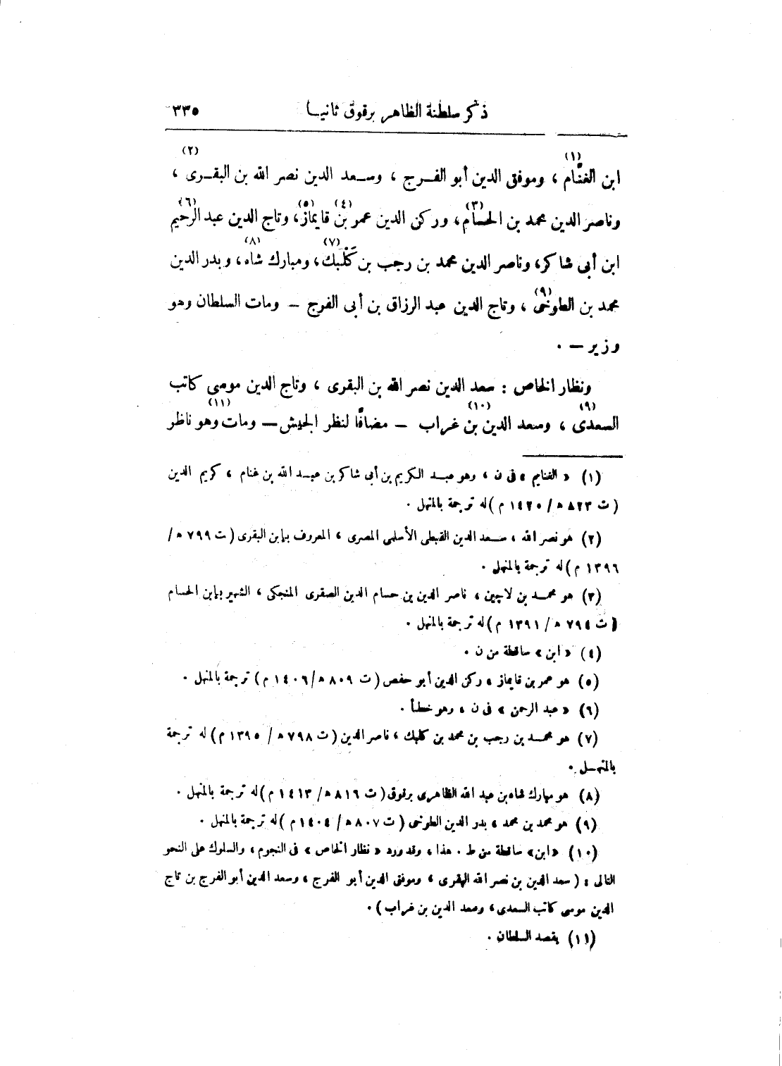 ونظار الخاص: سعد الدين نصر الله بن البقري، وتاج الدين موسى كاتب السعدي، وسعد الدين بن غراب - مضافاً لنظر الجيش - ومات وهو ناظر