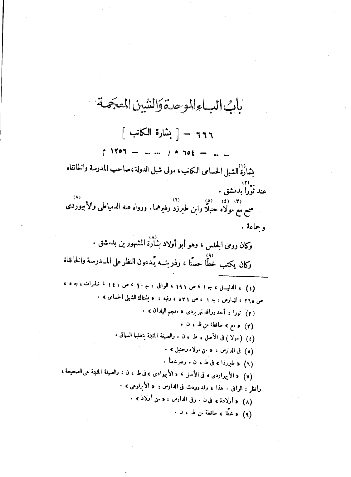 بشارة الشبلي الحسامي الكاتب، مولى شبل الدولة، صاحب المدرسة والخانقاة عند ثورا بدمشق.