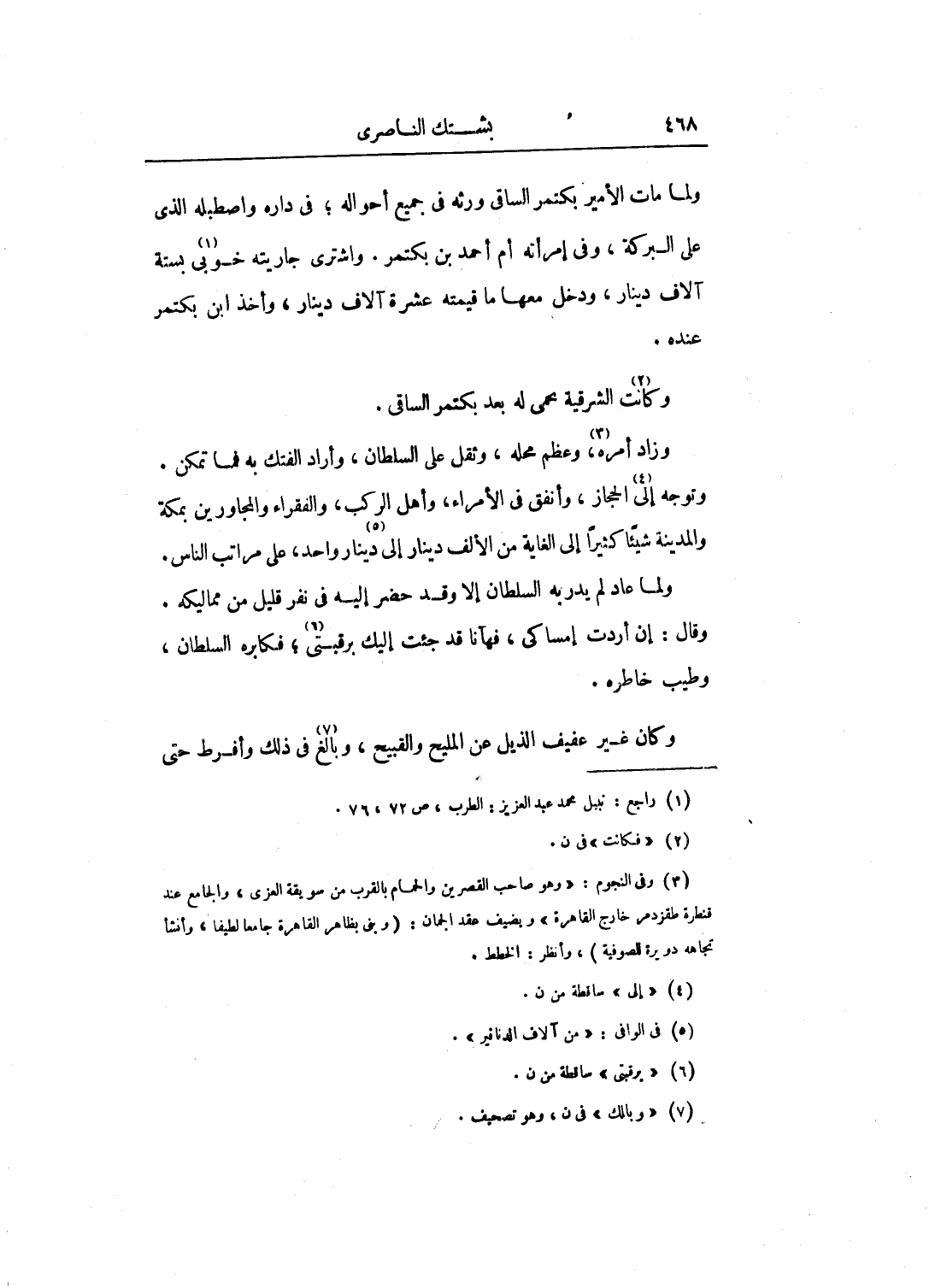 وزاد أمره، وعظم محله، وثقل على السلطان، وأراد الفتك به فيما تمكن. وتوجه إلى الحجاز، وأنفق في الأمراء، وأهل الركب، والفقراء والمجاورين بمكة والمدينة شيئاً كثيراً إلى الغاية من الألف دينار إلى دينار واحد، على مراتب الناس. ولما عاد لم يدر به السلطان إلا وقد حضر إليه في نفر قليل من مماليكه. وقال: إن أردت إمساكي، فها أنا قد جئت إليك برقبتي؛ فكابره السلطان، وطيب خاطره.