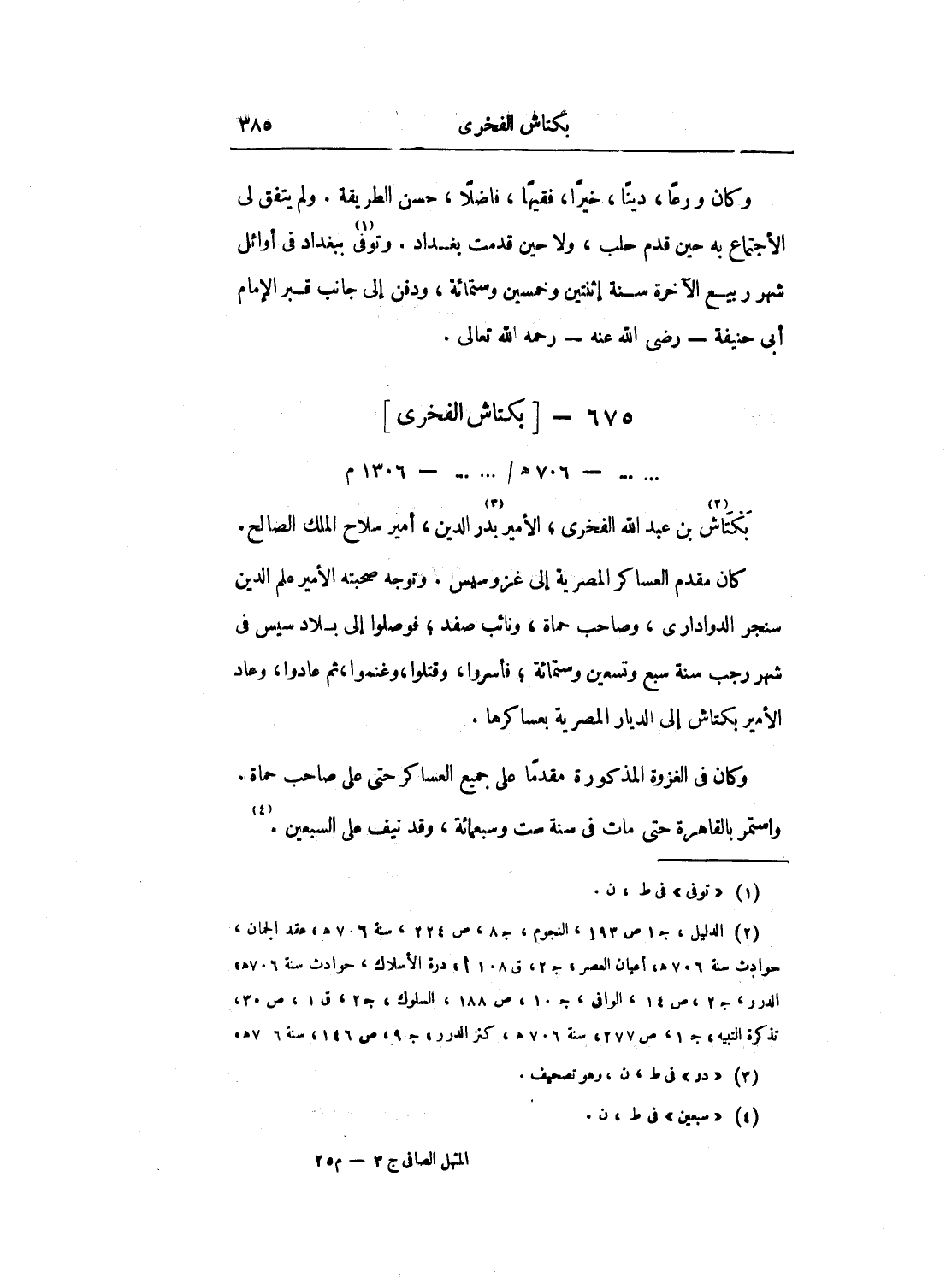 وكان في الغزوة المذكورة مقدماً على جميع العساكر حتى على صاحب حماة. واستمر بالقاهرة حتى مات في سنة ست وسبعمائة، وقد نيف على السبعين.