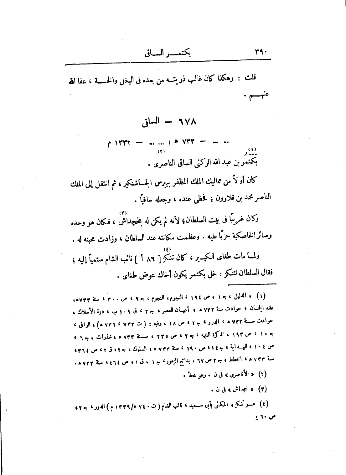 ولما مات طغاي الكبير، كان تنكز نائب الشام منتمياً إليه؛ فقال السلطان لتنكز: خل بكتمر يكون أخاك عوض طغاي.