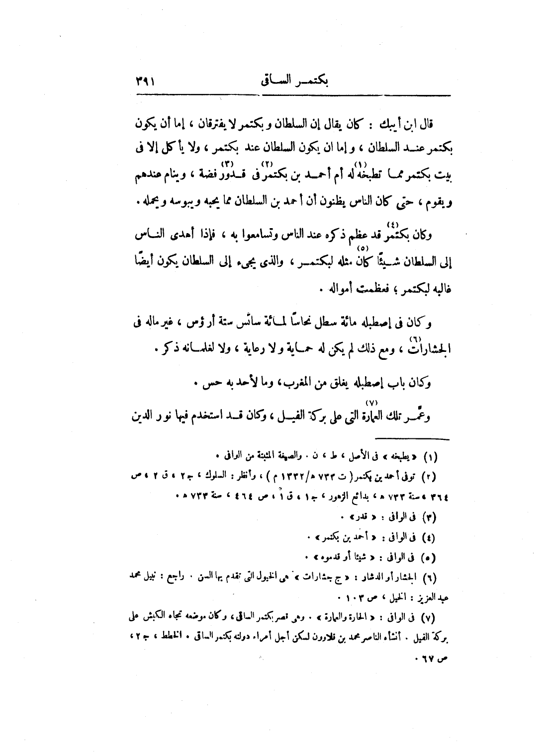 وعمر تلك العمارة التي على بركة الفيل، وكان قد استخدم فيها نور الدين