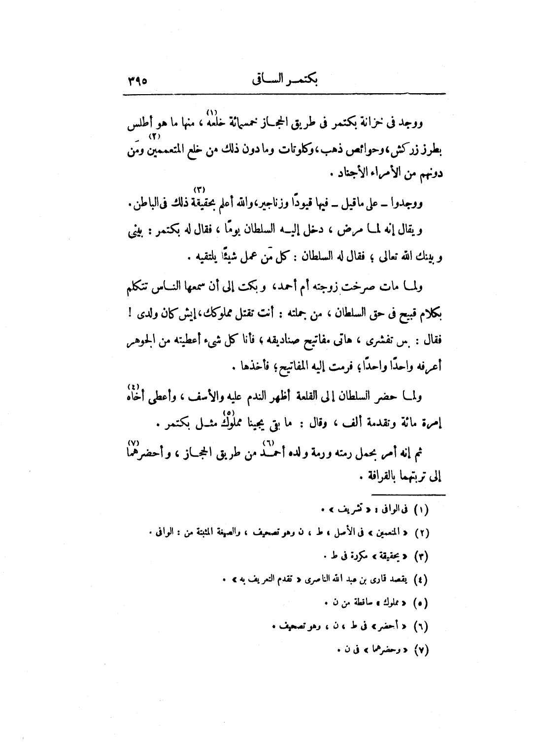 ووجد في خزانة بكتمر في طريق الحجاز خمسمائة خلعة، منها ما هو أطلس بطرز زركش، وحوائص ذهب، وكلوتات وما دون ذلك من خلع المتعممين ومن دونهم من الأمراء الأجناد.