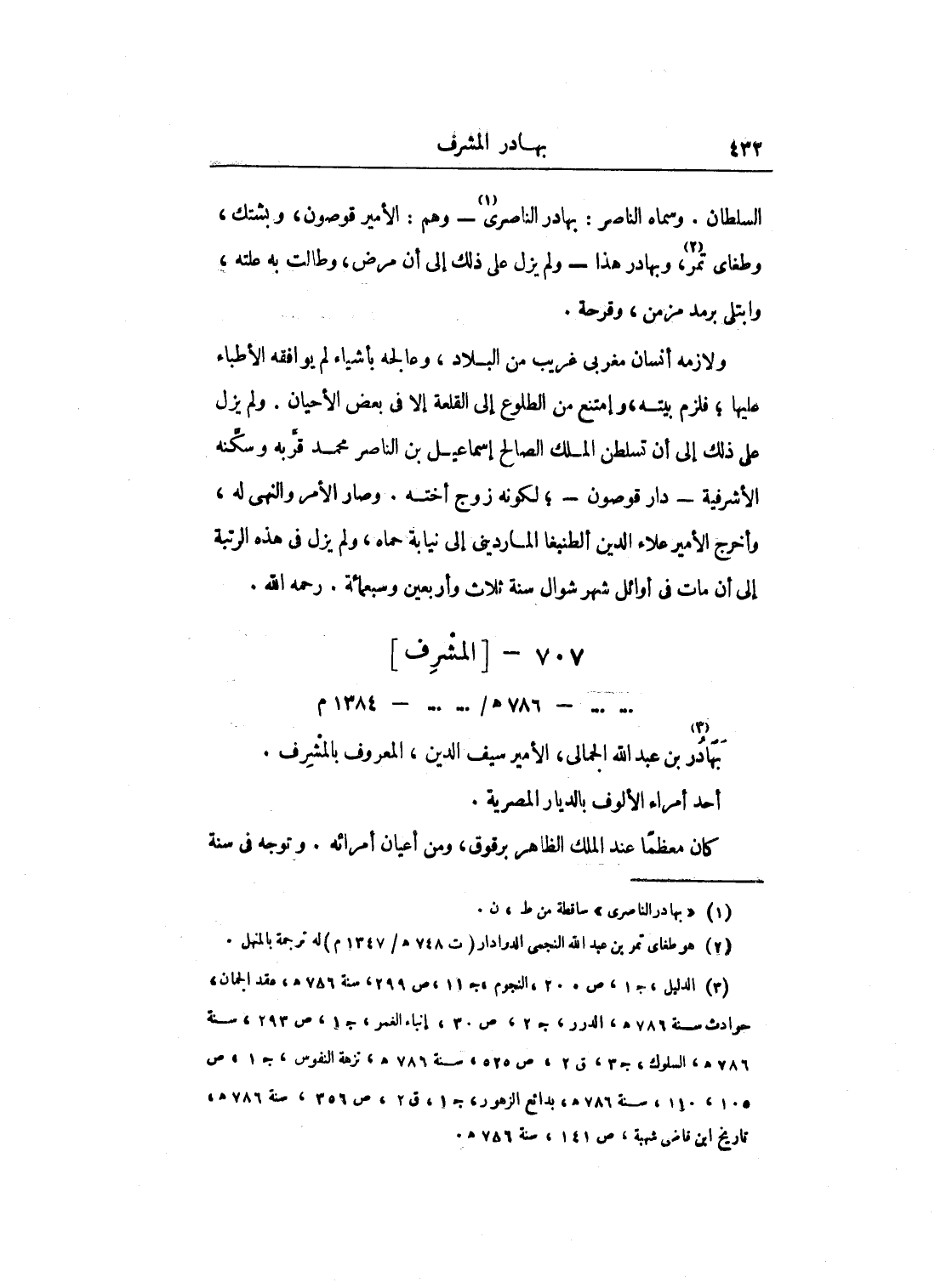بهادر بن عبد الله الجمالي، الأمير سيف الدين، المعروف بالمشرف.
