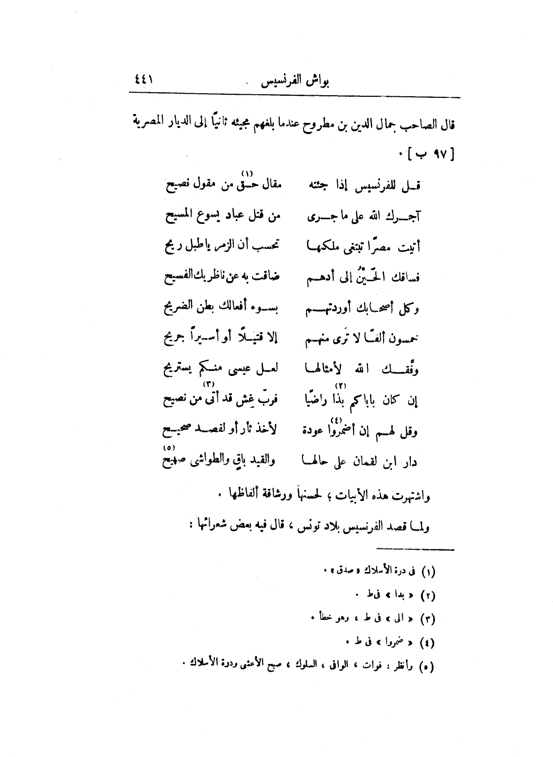 ولما قصد الفرنسيس بلاد تونس، قال فيه بعض شعرائها: