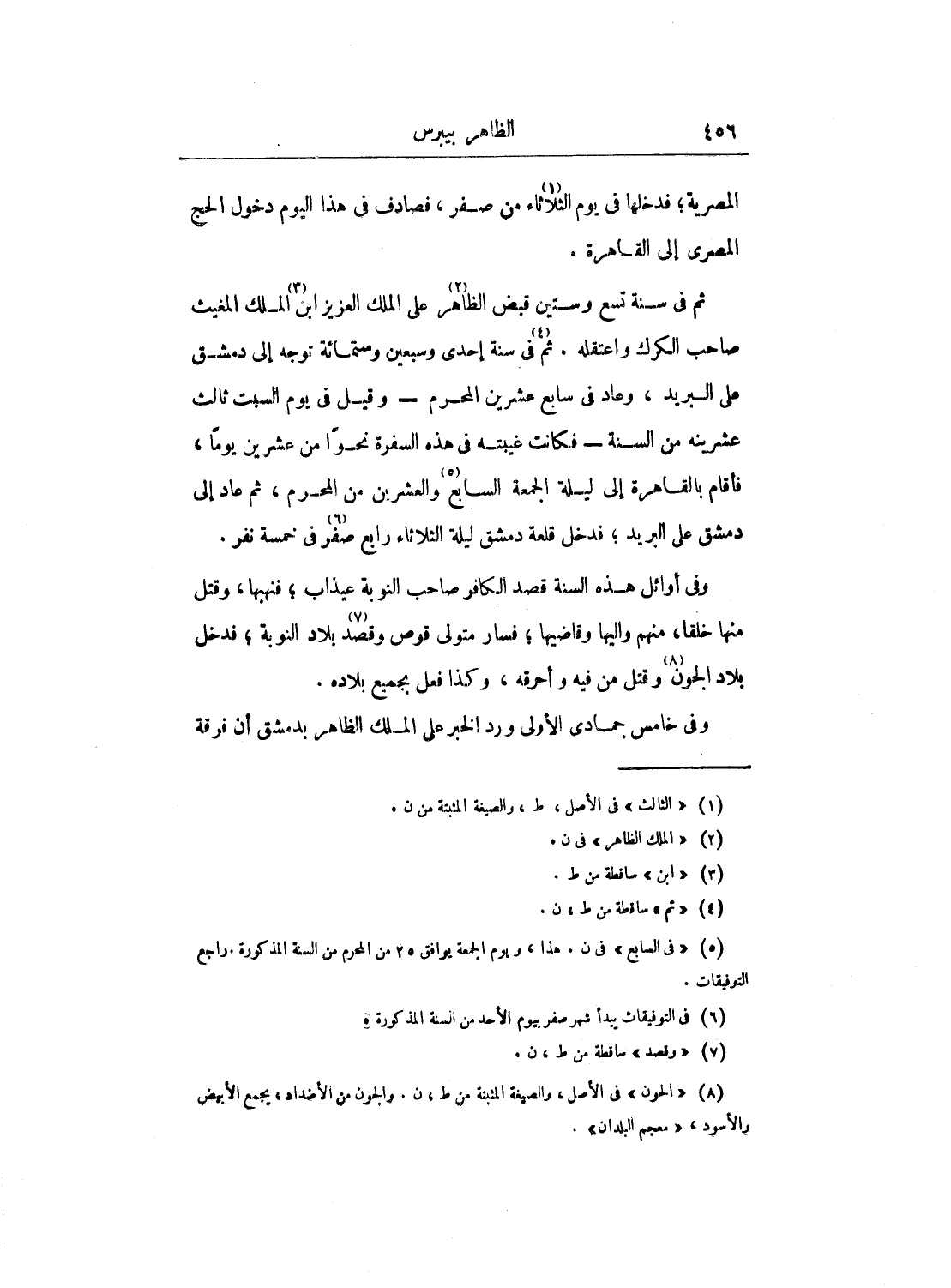 وفي خامس جمادى الأولى ورد الخبر على الملك الظاهر بدمشق أن فرقة