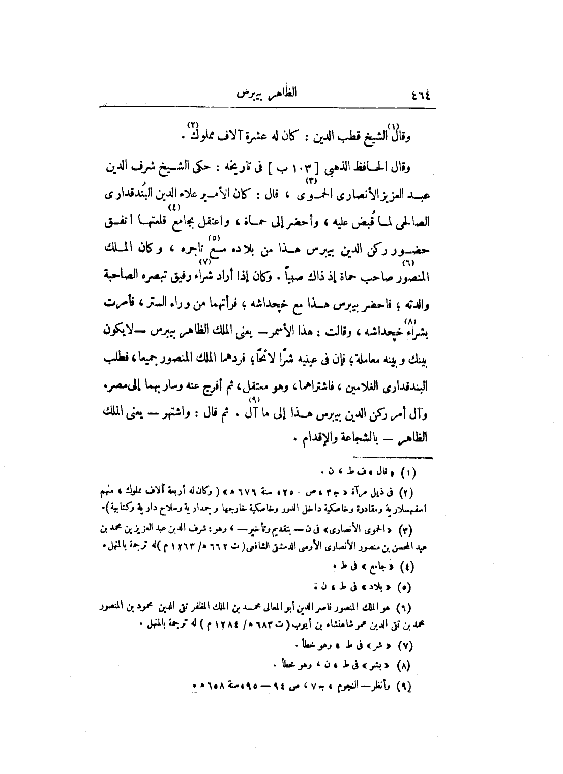ثم قال: واشتهر - يعني الملك الظاهر - بالشجاعة والإقدام.