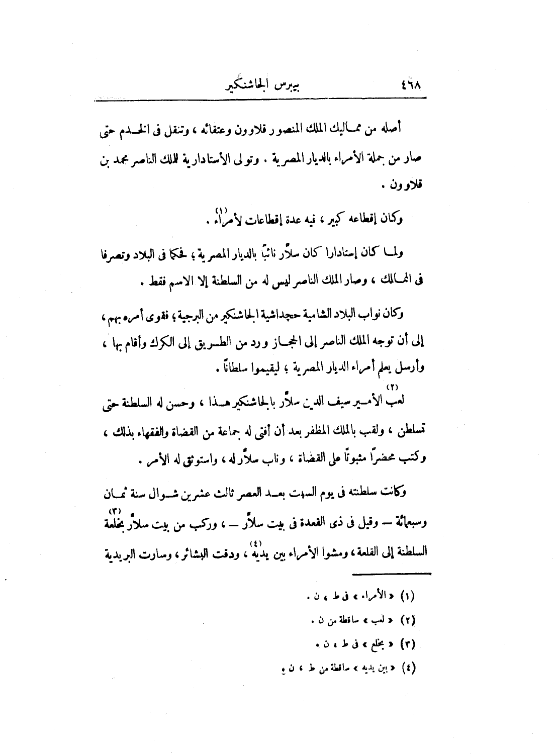 ولما كان أستاداراً كان سلار نائباً بالديار المصرية؛ فحكما في البلاد وتصرفا في الممالك، وصار الملك الناصر ليس له من السلطنة إلا الاسم فقط.
