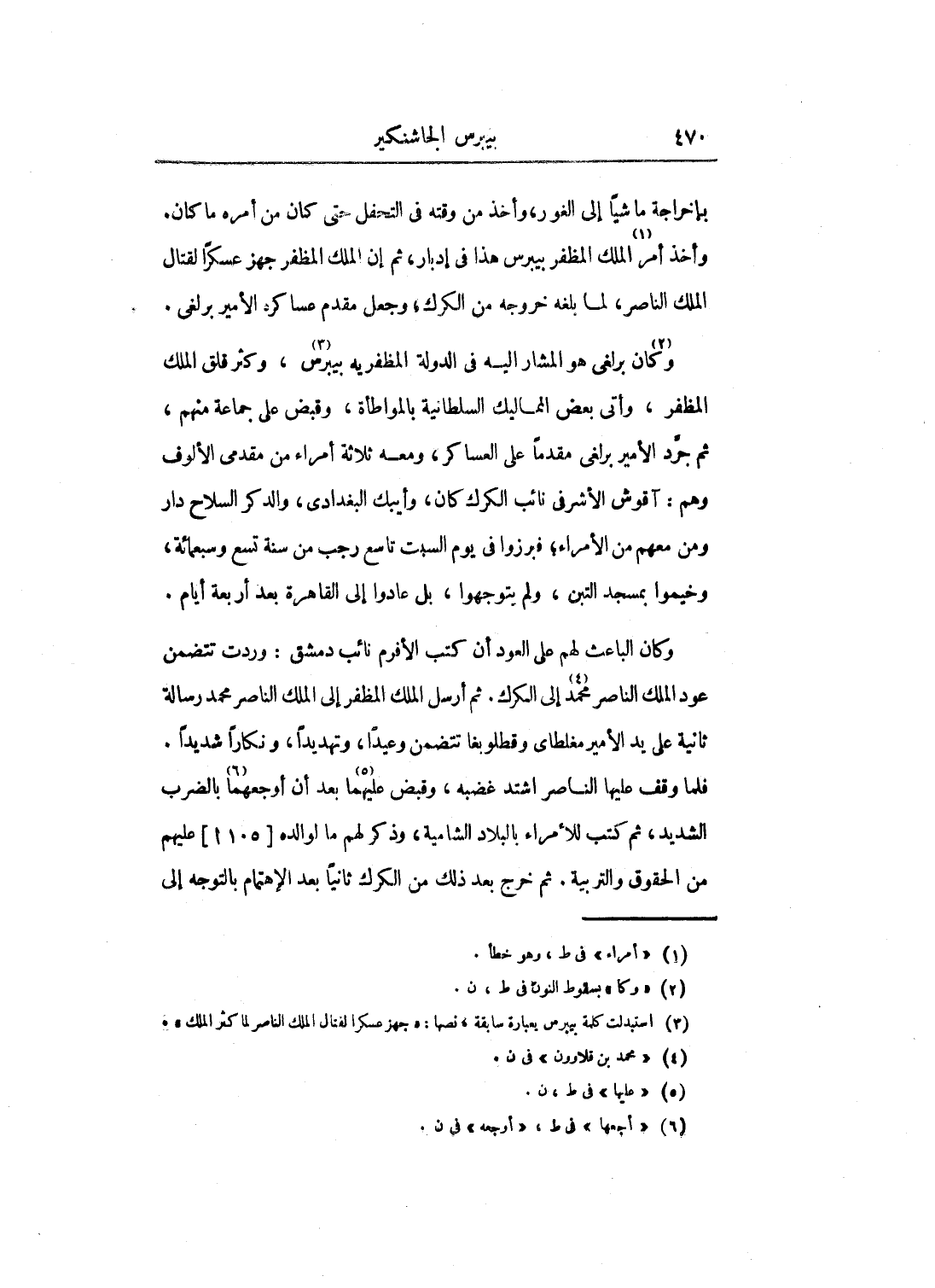 بإخراجه ماشياً إلى الغور، وأخذ من وقته في التحفل حتى كان من أمره ما كان. وأخذ أمر الملك المظفر بيبرس هذا في إدبار، ثم إن الملك المظفر جهز عسكراً لقتال الملك الناصر، لما بلغه خروجه من الكرك، وجعل مقدم عساكره الأمير برلغي.