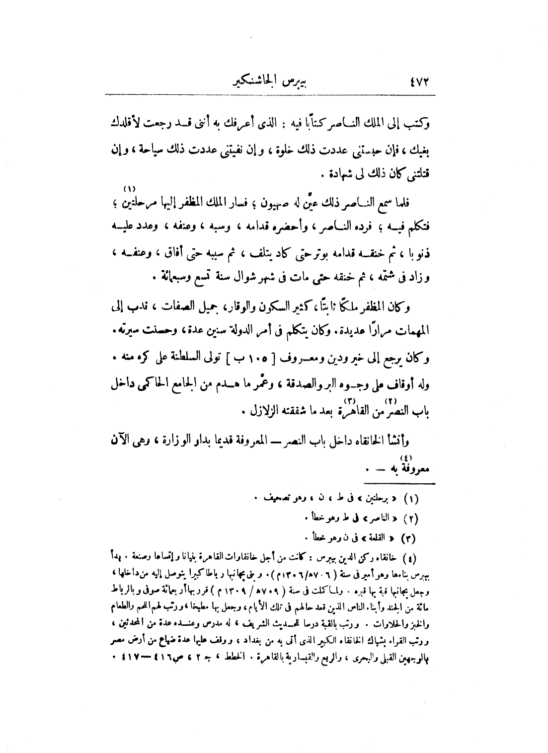 وأنشأ الخانقاه داخل باب النصر - المعروفة قديماً بدار الوزارة، وهي الآن معروفة به -.