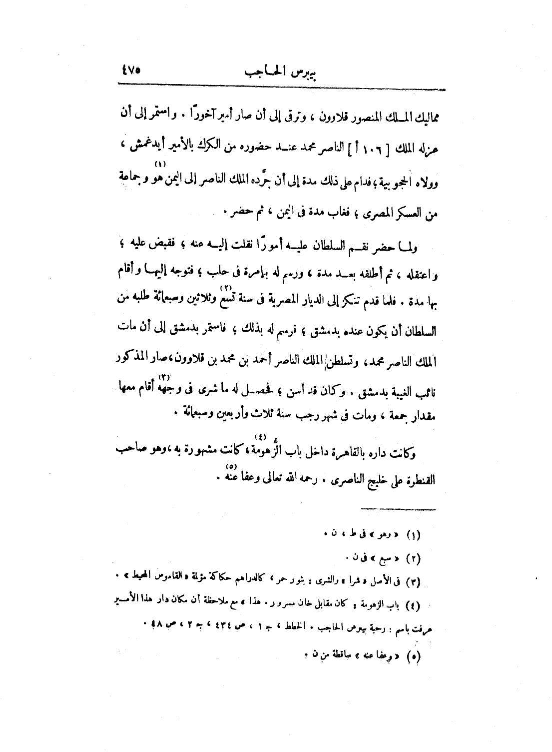 وكانت داره بالقاهرة داخل باب الزهومة، كانت مشهورة به، وهو صاحب القنطرة على خليج الناصري. رحمه الله تعالى وعفا عنه.
