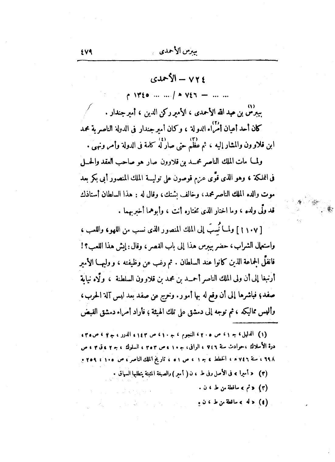 ولما نسب إلى الملك المنصور الذي نسب من اللهو، واللعب، واستعمال الشراب، حضر بيبرس هذا إلى باب القصر، وقال: إيش هذا اللعب؟ فانفل الجماعة الذين كانوا عند السلطان. ثم رغب عن وظيفته، ووليها الأمير أرنبغا إلى أن ولى الملك الناصر أحمد بن محمد بن قلاوون السلطنة، ولاه نيابة صفد؛ فباشرها إلى أن وقع له بها أمور. وخرج عن صفد بعد لبس آلة الحرب، وألبس مماليكه، ثم توجه إلى دمشق على تلك الهيئة؛ فأراد أمراء دمشق القبض