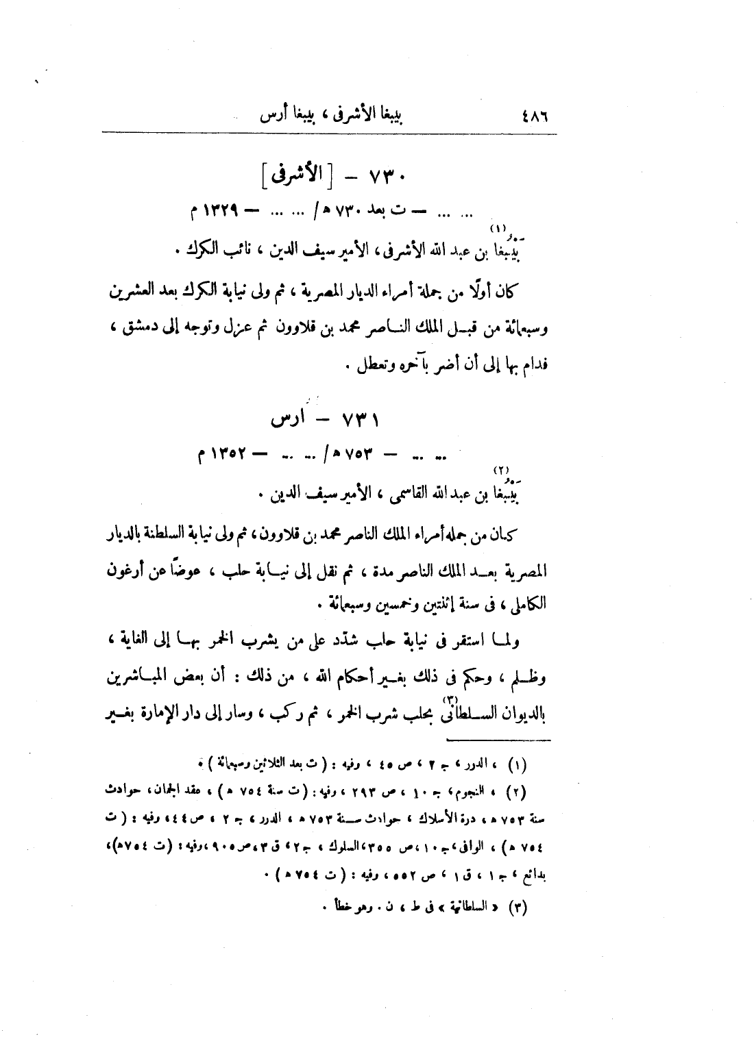 كان من جملة أمراء الملك الناصر محمد بن قلاوون، ثم ولى نيابة السلطنة بالديار المصرية بعد الملك الناصر مدة، ثم نقل إلى نيابة حلب، عوضاً عن أرغون الكاملي، في سنة اثنتين وخمسين وسبعمائة.