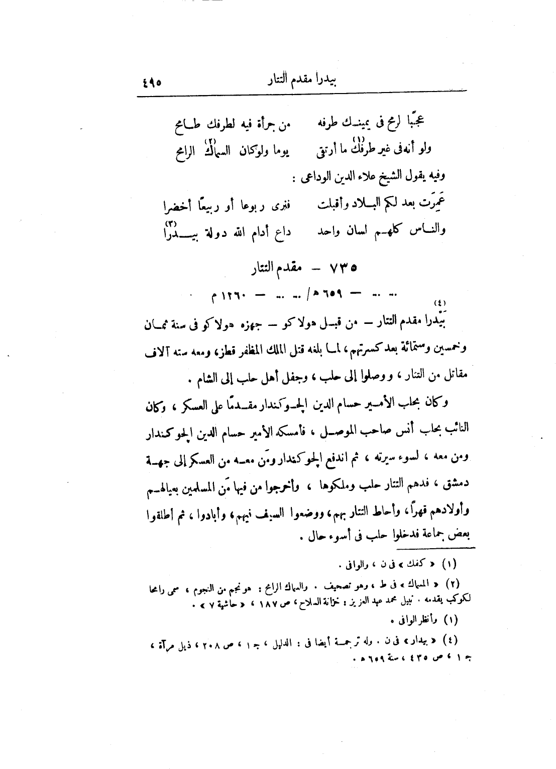 بيدرا مقدم التتار - من قبل هولاكو - جهزه هولاكو في سنة ثمان وخمسين وستمائة بعد كسرتهم، لما بلغه قتل الملك المظفر قطز، ومعه ستة آلاف مقاتل من التتار، ووصلوا إلى حلب، وجفل أهل حلب إلى الشام.