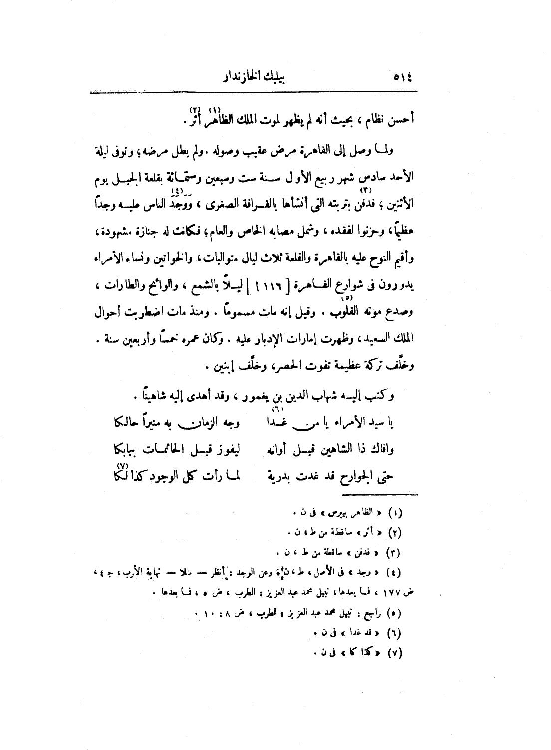 أحسن نظام، بحيث أنه لم يظهر لموت الملك الظاهر أثر.