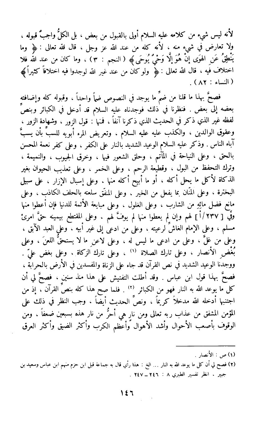(2) فصح لي أن كل ما يوعد الله به النار الخ: هذا رأي قال به جماعة قبل ابن حزم منهم ابن عباس وسعيد بن جبير، انظر تفسير الطبري 8: 246 - 247.