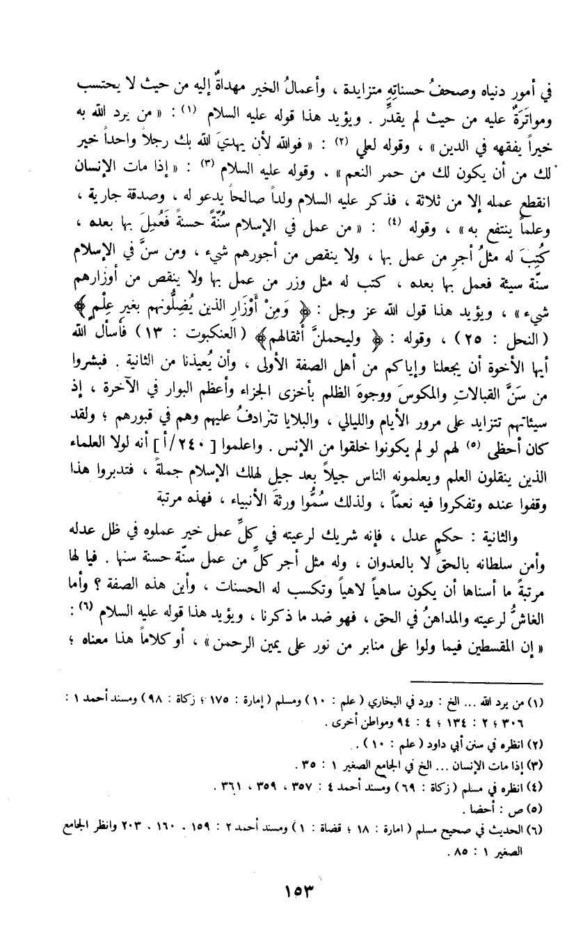 (6) الحديث في صحيح مسلم (امارة: 18؛ قضاة: 1) ومسند أحمد 2: 159. 160. 203 وانظر الجامع الصغير 1: 85) .