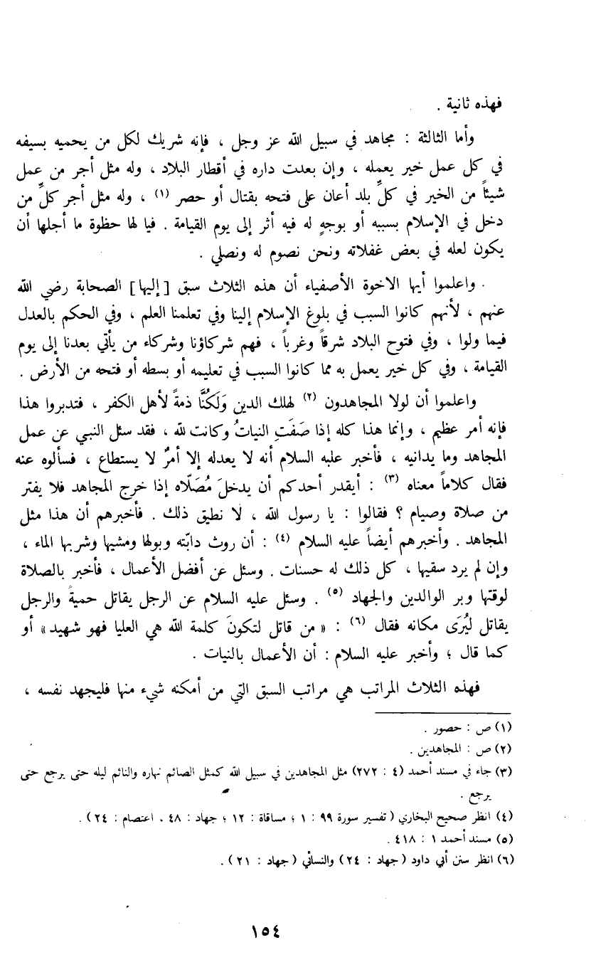 (3) جاء في مسند أحمد (4: 272) مثل المجاهدين في سبيل الله كمثل الصائم نهاره والنائم ليله حتى يرجع حتى يرجع.