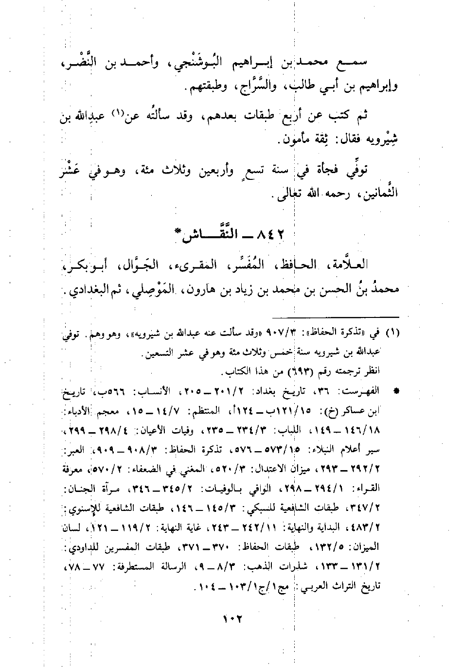 (¬1) في "تذكرة الحفاظ": 3/ 907 "وقد سألت عنه عبد الله بن شيرويه"، وهو وهم. توفي عبد الله بن شيرويه سنة خمس وثلاث مئة وهو في عشر التسعين.