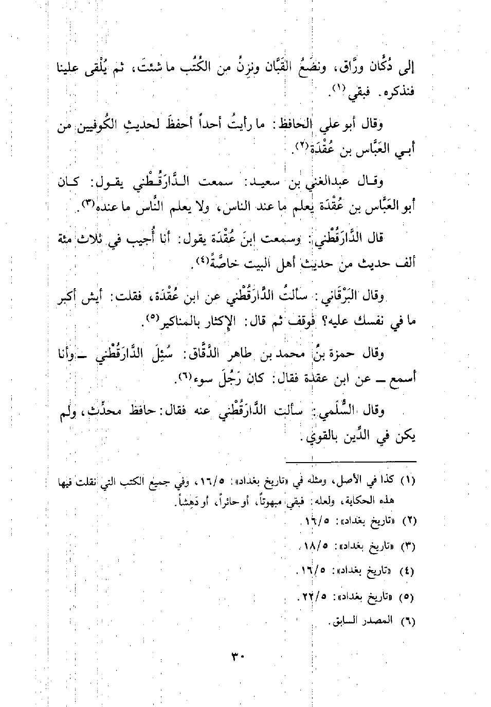 وقال البَرْقَاني: سألتُ الدّارَقطْني عن ابن عُقْدَة، فقلت: أيش أكبر ما في نفسك عليه؟ فوقف ثم قال: الإِكثار بالمناكير (¬5).
