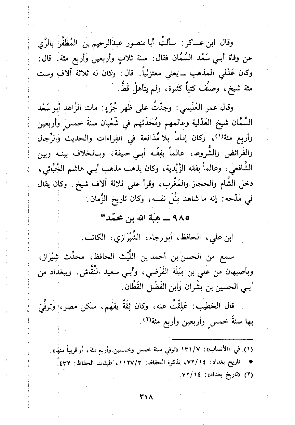(¬1) في "الأنساب": 7/ 131 "توفي سنة خمس وخمسين وأربع مئة، أو قريبًا منها".