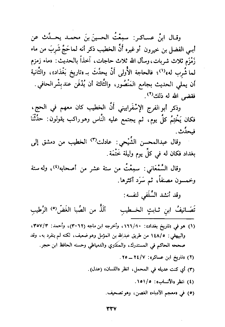 تَصَانيفُ ابنِ ثابتٍ الخطيبِ ... ألَذُّ من الصِّبا الغَضّ (¬5) الرَّطيبِ