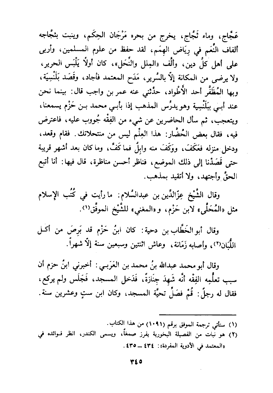 وقال الشَّيخ عِزّ الدِّين بن عبد السَّلام: ما رأيت في كُتُب الإسلام مثل "المُحَلَّى" لابن حَزْم، و"المغني" للشَّيخ الموفَّق (¬1).